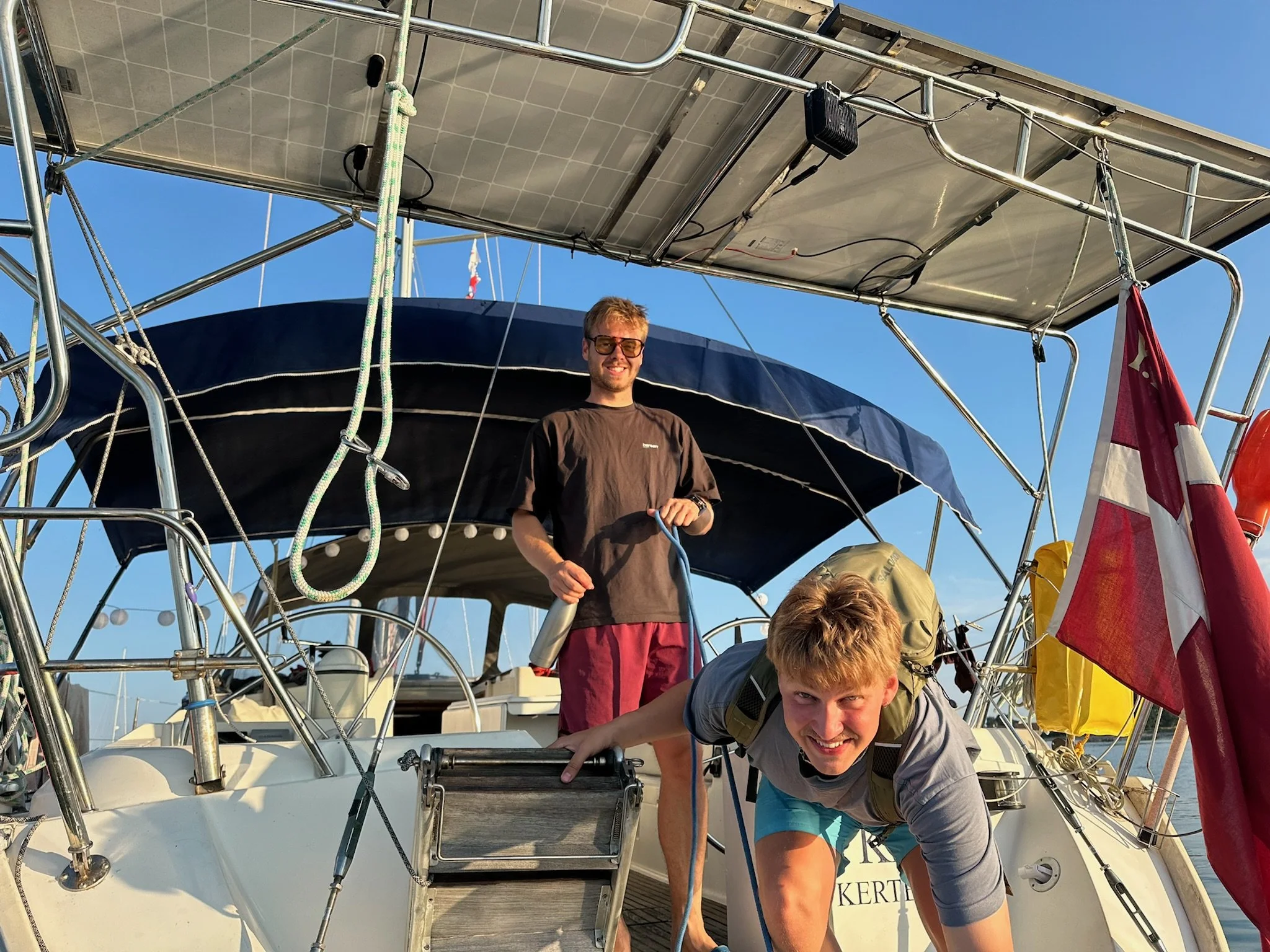 Kaia har plads til otte personer – to i hver kahyt. Privatlivet er naturligt begrænset, men der er stadig mulighed for at trække sig: i kahytten, i en hængekøje på dækket, på stranden eller med et par AirPods i ørerne. At bo tæt på hinanden kræver rummelighed og tolerance, men det giver også grobund for stærke fællesskaber og nye venskaber.